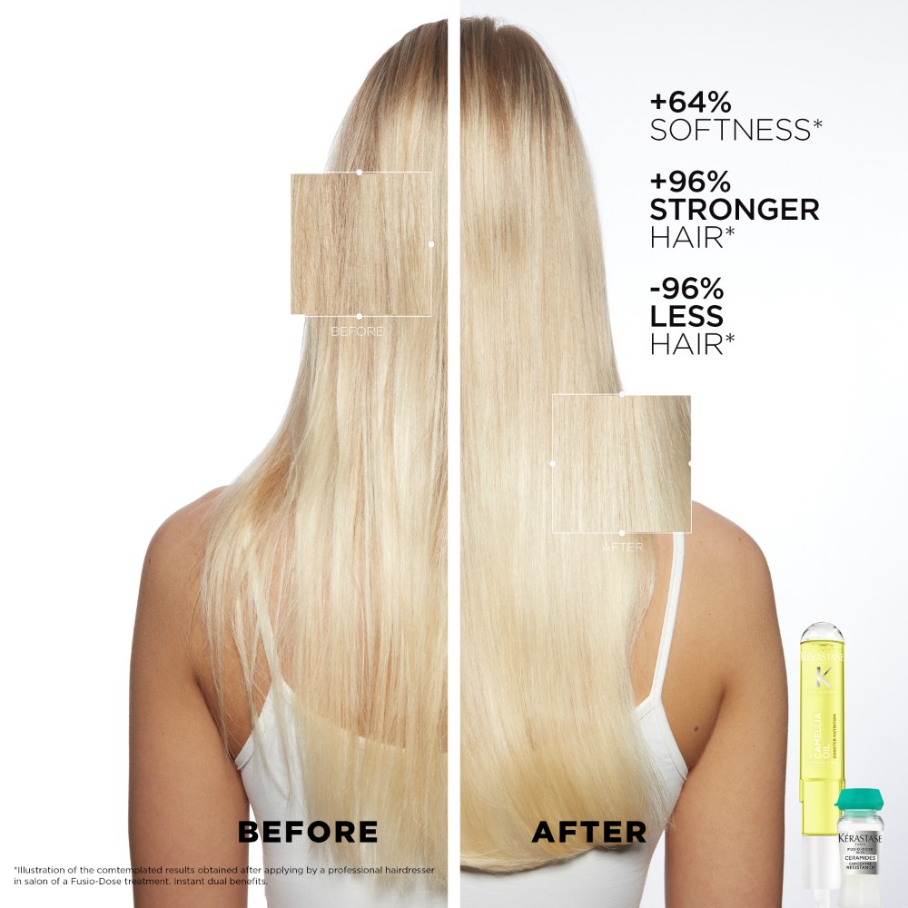 Fusio-Dose is a Kérastase service, only available in salon. It’s a liquid care technology, for instant