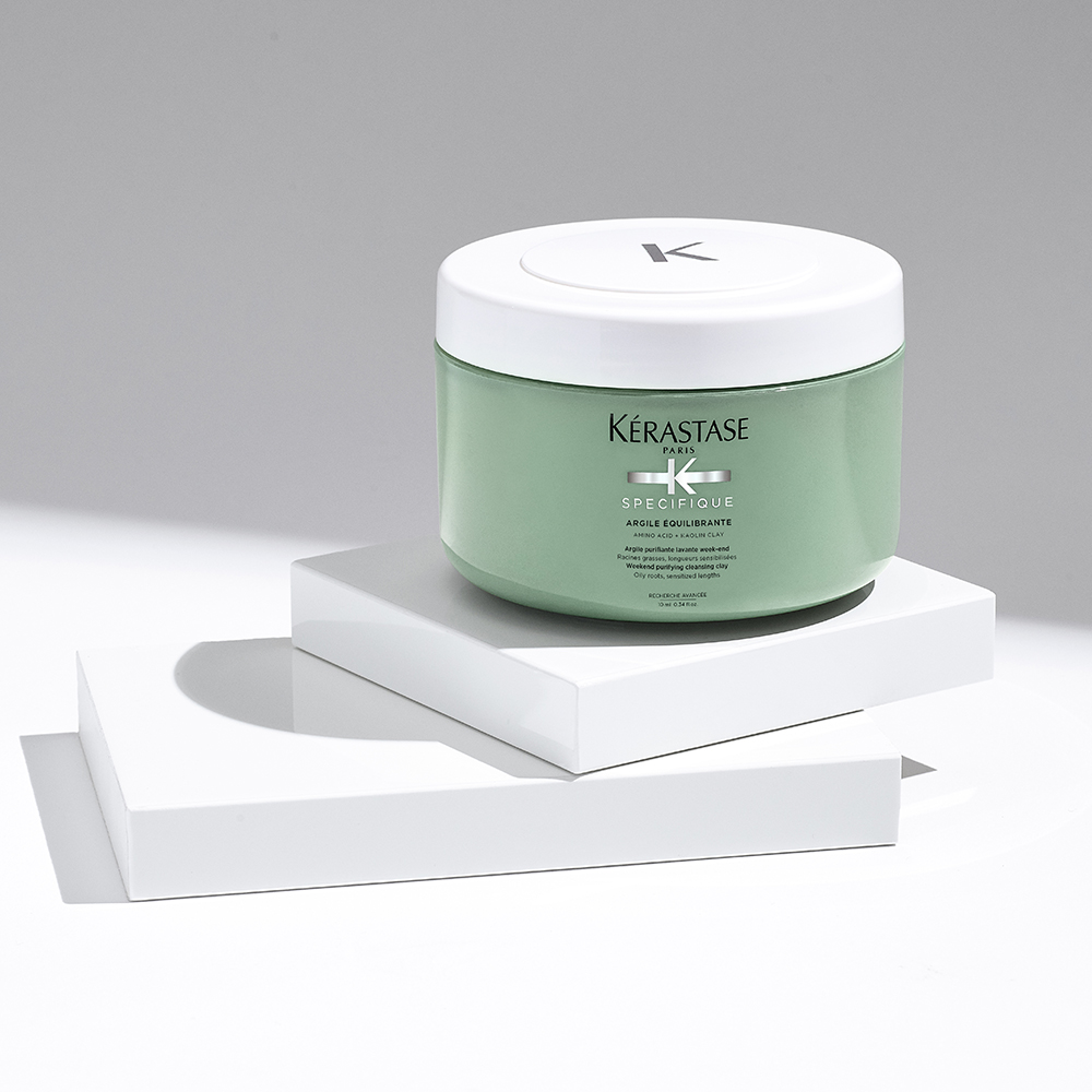 One of the most effective oily scalp treatments you can implement is a purifying scalp cleanser. Our Spécifique Argile Équilibrante Hair Cleanser Clay Shampoo for Oily Hair is formulated with amino acid and kaolin clay to remove scalp impurities, excess oil and product buildup – without dehydrating your strands. Use it once per week in place of your normal shampoo.